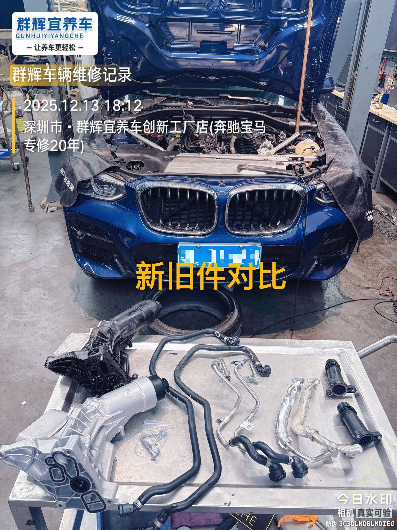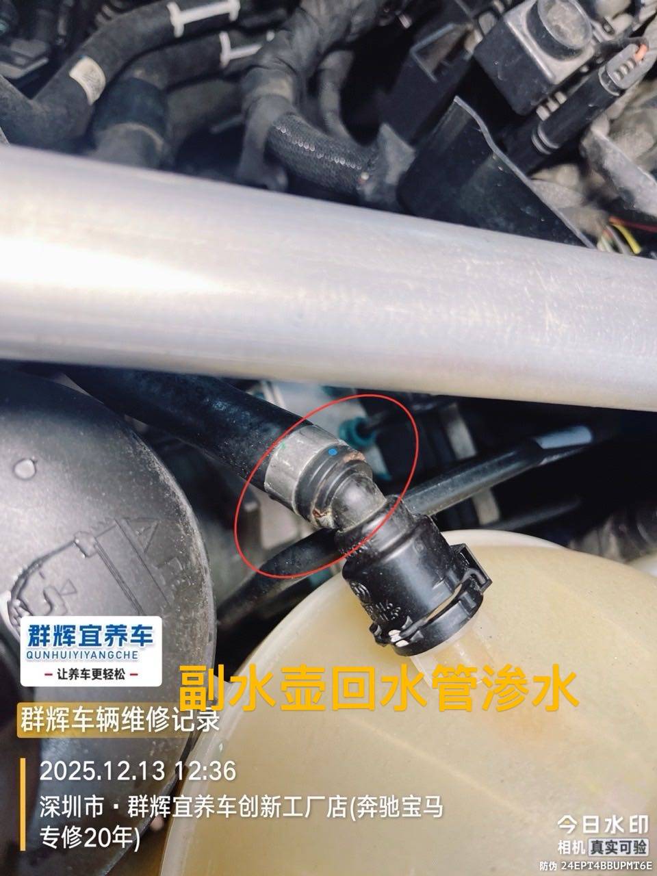 对于行驶近10万公里的宝马车型,冷却系统的塑料与橡胶件正处于老化高发期。经过技师打压测试与内窥镜深度探查,确认多处渗漏点: