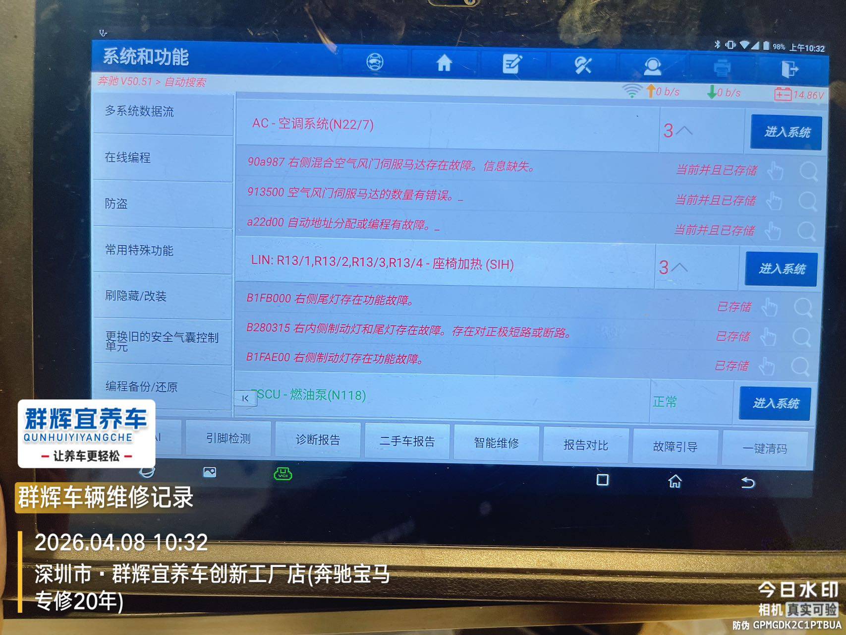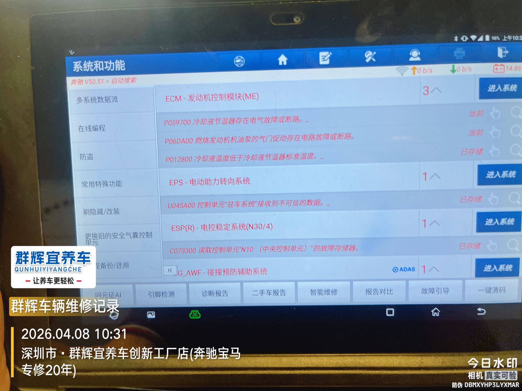 技师通过专业诊断电脑进行全车扫描,锁定以下核心问题: