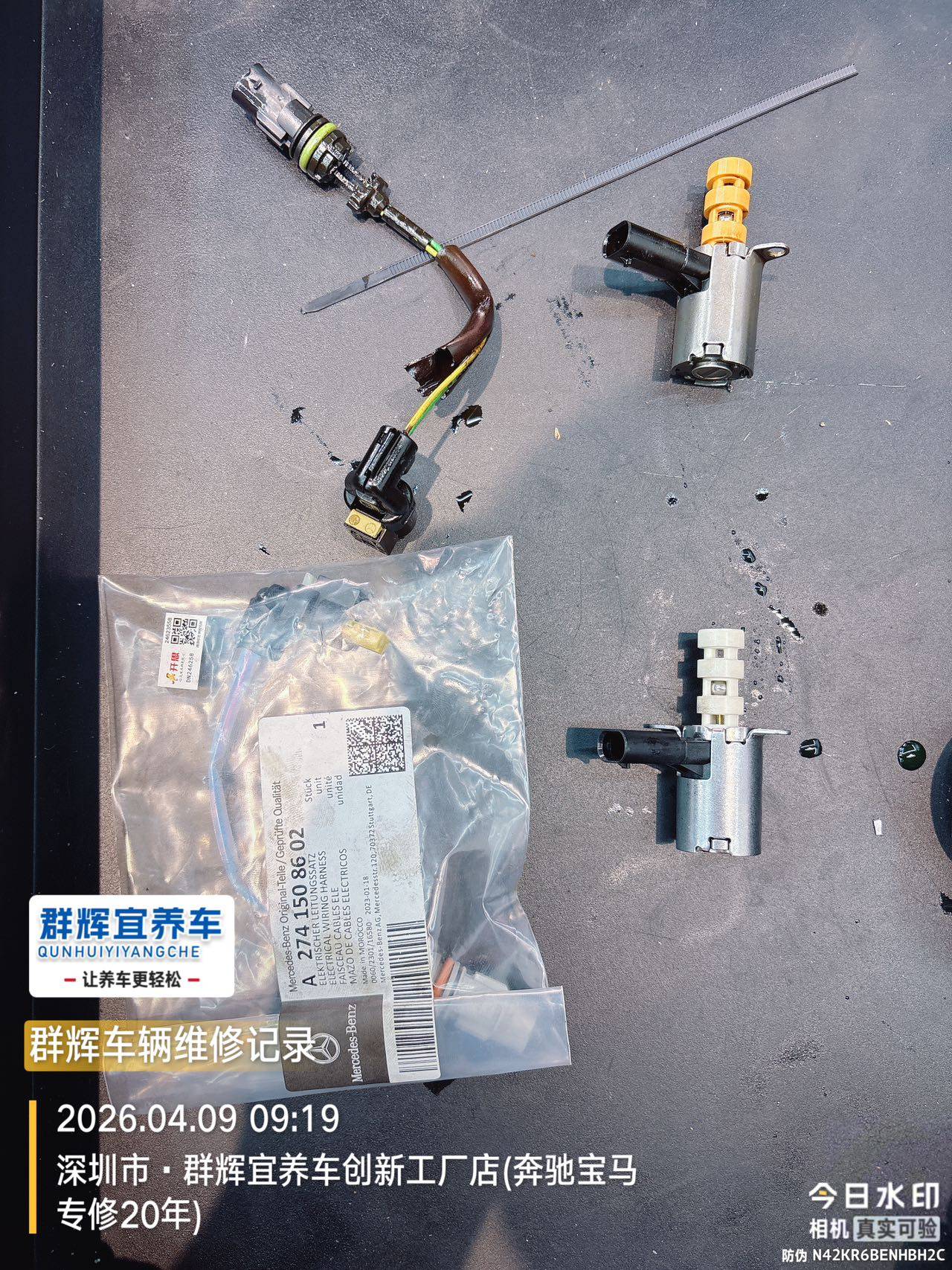 - 润滑系统:存在故障码“发动机机油泵的气门促动存在电路故障或断路”。这是M274发动机常见的电磁阀线束渗油或电磁阀本身损坏导致的电子故障。
